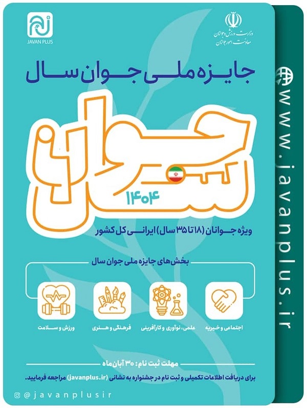 جایزه ملی جوان ۱۷ آبان ۱۴۰۴ | ۱۳:۲۴ کد : ۵۶۱۱۵ اطلاعیه ارسال به دیگران نام شما ایمیل شما ایمیل دریافتکننده ارسال انصراف تعداد بازدید:۱۲۶۰ جایزه ملی جوان سال ۱۴۰۴ فراخوان شرکت در جایزه ملی جوان سال ۱۴۰۴ منتشر شد.